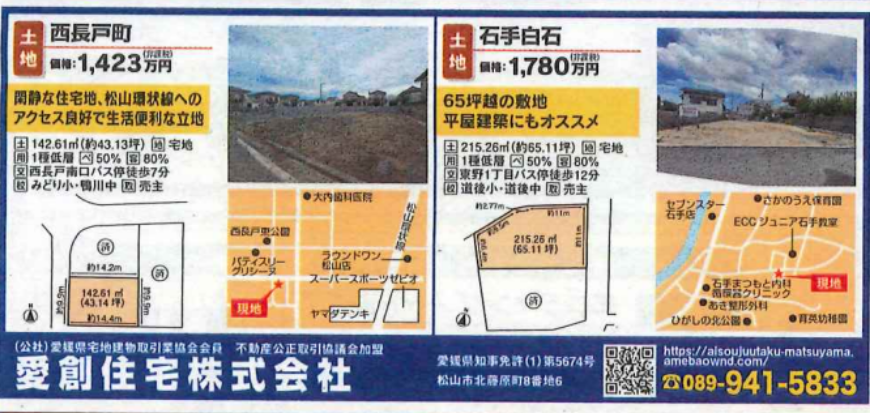 松山市・砥部町・松前町の不動産情報 住宅・マンション・土地のご相談は愛創住宅へ